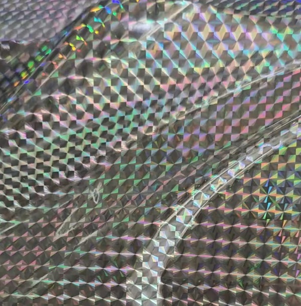 Distira handiko diamante holografikoa eredu laminazio termikoko filma aluminioz estalitako laser diamante ereduaren ehundura BOPP filmaren oinarrian lotuz egiten da. Ostadarraren irideszentzia distiratsua islatzen du dinamikoki, eta ehundura bisual oso aberatsa eskaintzen du. Egokia da ontzi-kaxak eta goi-mailako paper-produktuak bezalako eszenatokiak inprimatzeko, eta produktuen kalitate bikaina azkar hobetu dezake.